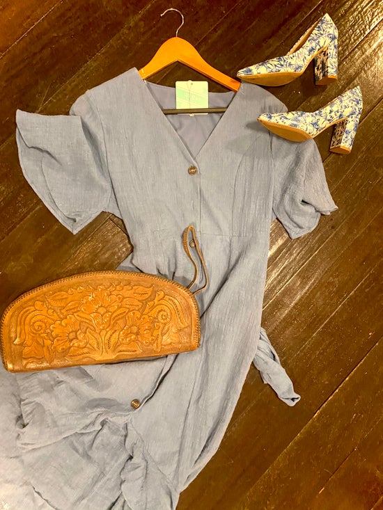 Brighten up your WARDROBE with our Button Up V-Neck Midi Dress in a vibrant blue hue. This effortlessly chic dress features a flattering V-neckline and button-down front, adding a touch of classic charm to the flowy silhouette. The midi length provides a versatile, sophisticated look, perfect for both daytime outings and evening events. Lightweight and breathable, this dress is a must-have for warm weather, whether you’re pairing it with sandals for a casual vibe or dressing it up with heels. Step into the sunshine with style!