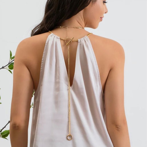 Satin Halter Top with Chain Detail