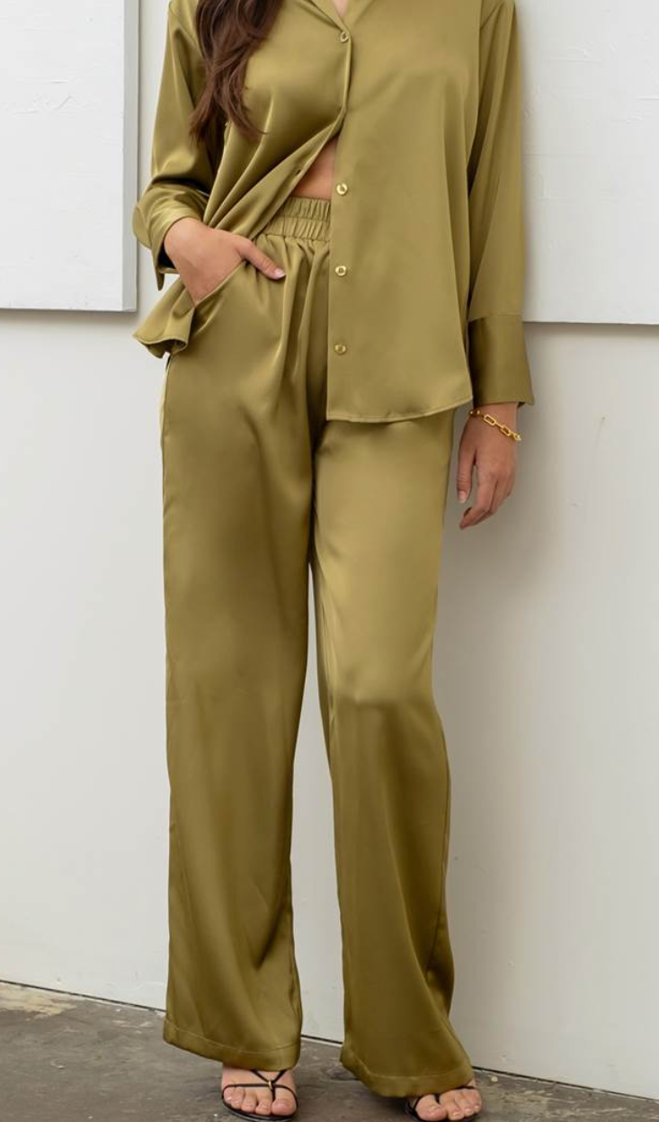 Step into sophistication with our Solid Satin Wide Leg Pants in a rich blue hue. These luxurious pants feature a flowing wide-leg silhouette that exudes elegance and comfort, perfect for any occasion. Crafted from soft, satin fabric, they drape beautifully and add a touch of glamour to your WARDROBE. The high-waisted design flatters your figure, making them easy to pair with fitted tops or blouses. Dress them up with heels and statement jewelry for a night out, or keep it casual with a tucked-in tee for a chic day look. Elevate your style and embrace versatility with these stunning wide-leg pants!